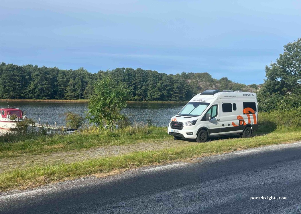 Let op: geen overnachting toegestaan – privéterrein Mooie plek direct aan het water, maar is privéterrein. We werden weggestuurd door een lokale bewoner. Volgens hem is overnachten met een camper hier niet toegestaan, ondanks dat de plek op Park4Night staat vermeld. Er stond géén bord, maar in Zweden is vrijwel alle grond buiten steden privé-eigendom – ook rotsen, bosweggetjes en veel kustlijnen.
