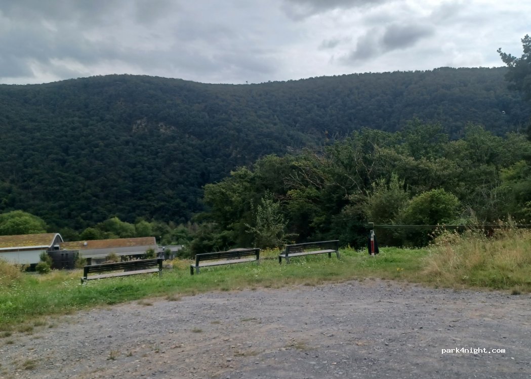 Quiet dead end with benches for walkers. Quiet.