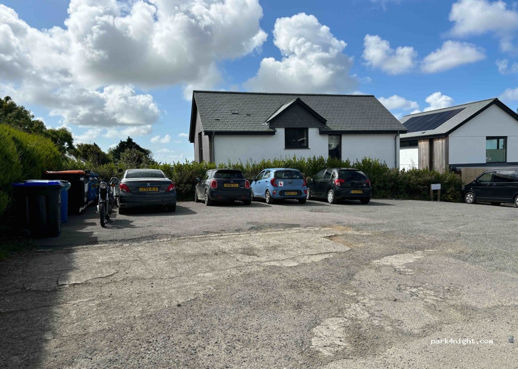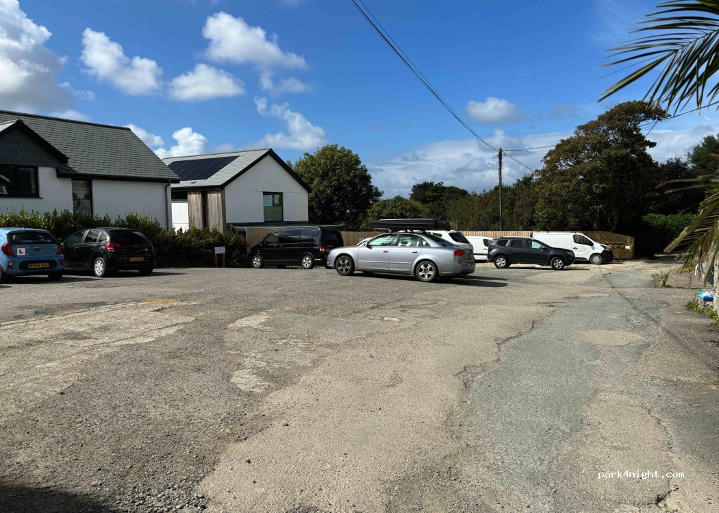 parcheggio piccolo,fuori dal mondo lungo la strada x Tintagel. senza servizi come citato, in pendenza e l'ho trovato affollato di auto. Senza doccia come descritto da altri. secondo me non a senso per 10£ .