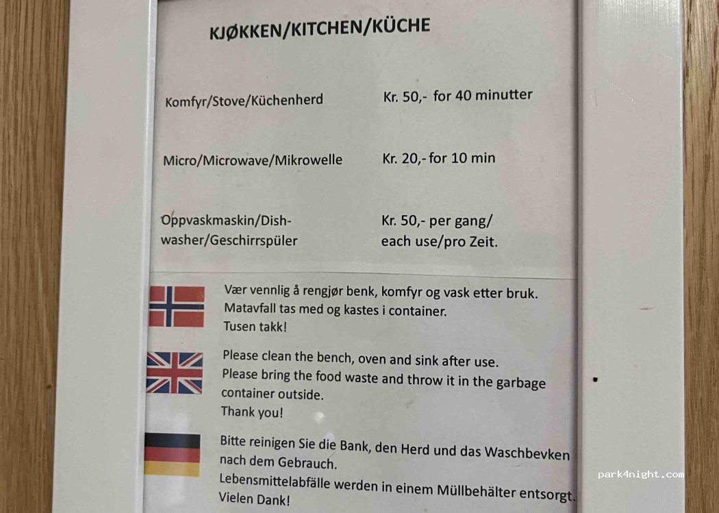 Ok place,ok price. But it’s right next to a loud train line and it’s a big camping site so recommend to bring ear plugs to sleep in peace. We paid 335kr a night with electricity.
