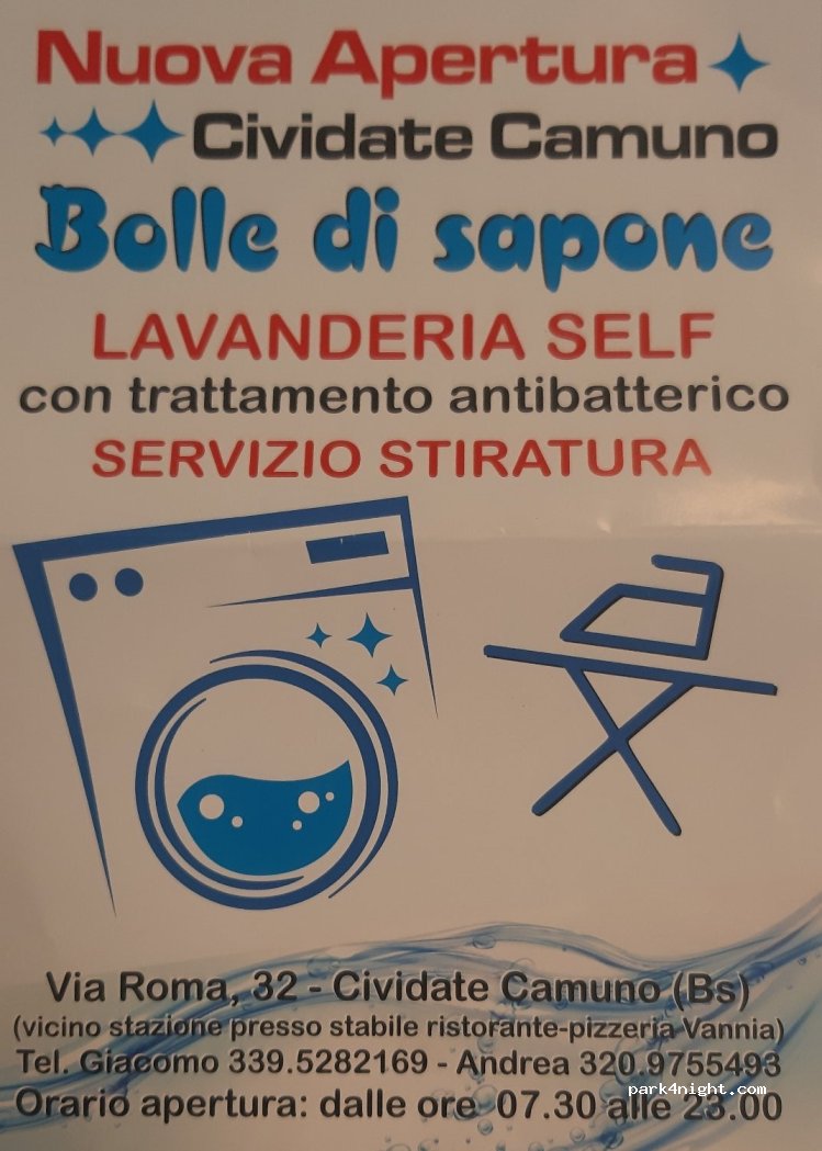 Lavanderia self-service a gettoni (€) con asciugatrice. Si trova nell'edificio del ristorante pizzeria Vannia e c'è un piccolo parcheggio antistante.