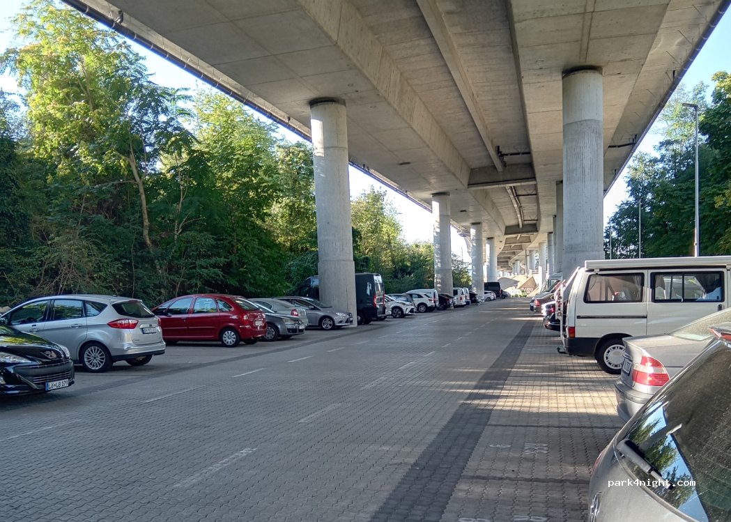 Für eine Nacht zum Übernachten perfekt. Ruhig unter Brücke. Keine Infrastruktur. In 5 Minuten auf Autobahn Richtung Frankreich.