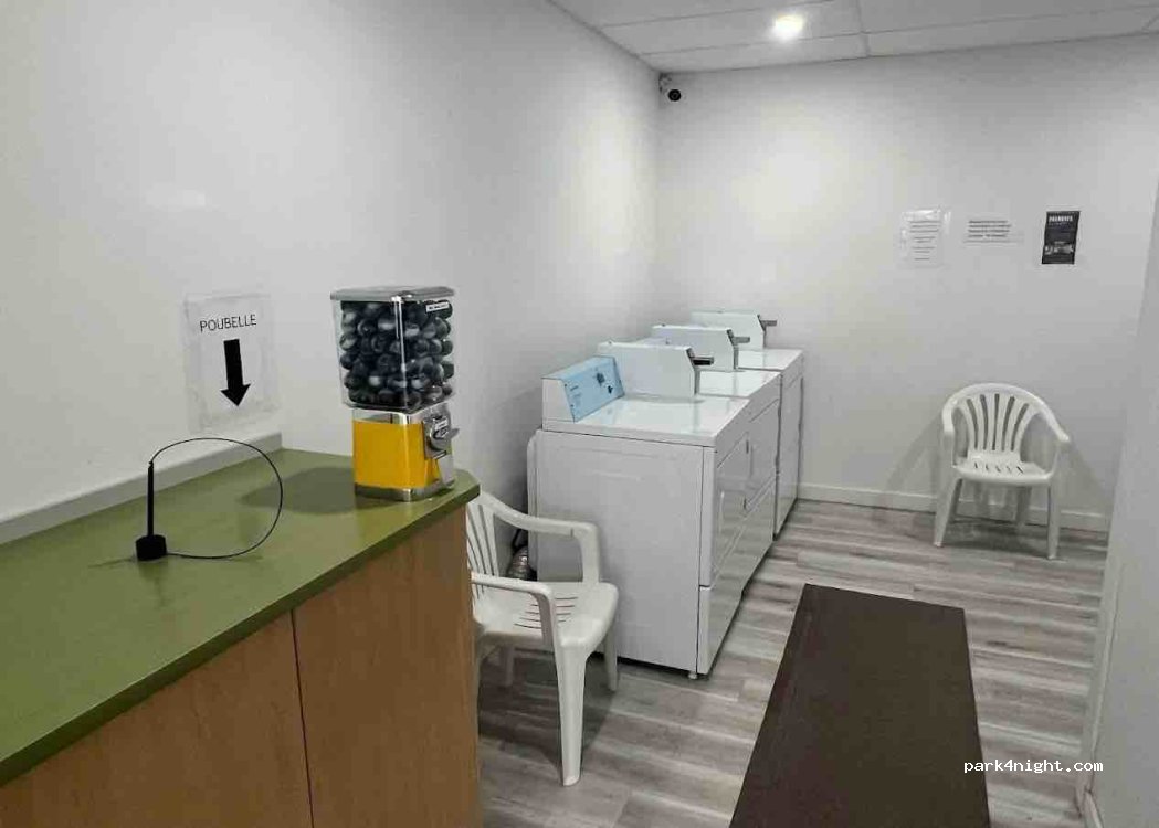 Selbstbedienungs-Waschküche, Tag und Nacht geöffnet. Kostenpflichtige Waschmaschinen und Trockner. 3-in-1-Gezeitenkapseln sind im Verkauf und können vor Ort gewechselt werden: 1 $ im Tausch gegen 5 $-, 10 $- oder 20 $-Scheine!