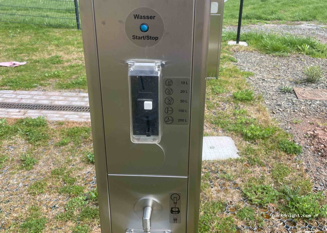 Nur zur Entsorgung da gewesen. Aber Toilettenentsorgung kostenlos. Frischwasser 10 l/0,10 €. Stromanschlüsse 20 Stück, Kosten nicht ersichtlich. Kein Mülleimer gefunden. Standzeit bis 4 Tage bzw. 96 h. Grauwasserentsorgung okay, bisschen klein. Platz selbst begrast mit Lochmatten befestigt.