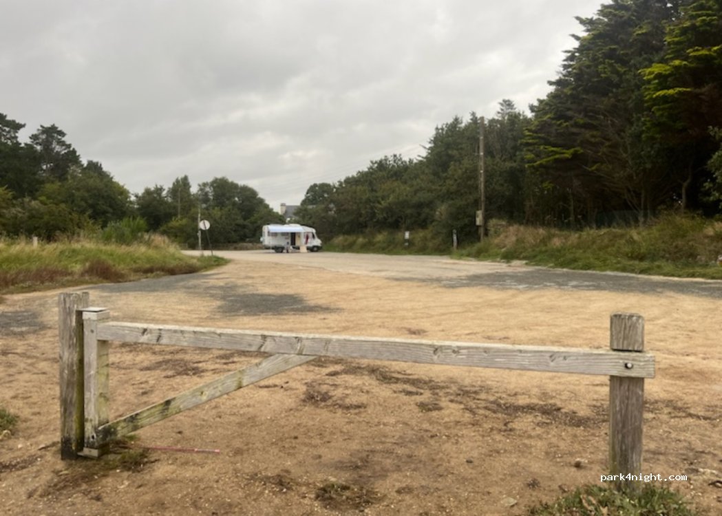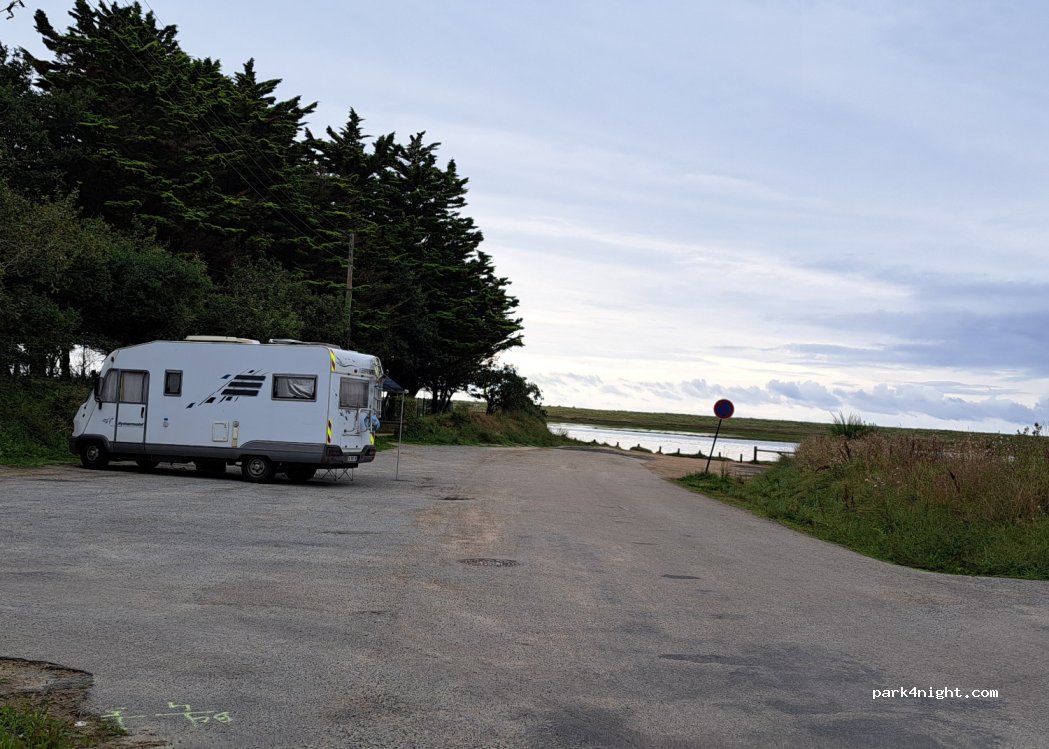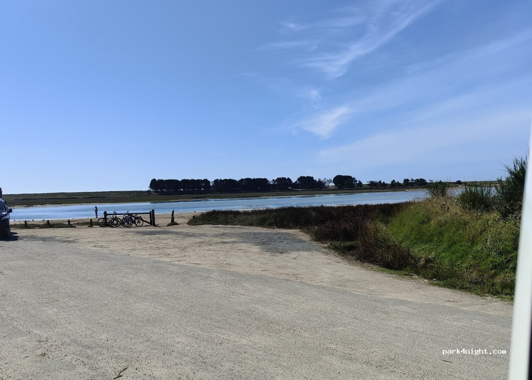 View of Anse de Benodet. Parking (on your left) day/night, flat, about 10 spaces (no parking on the right) (next to another parking lot limited in height to 1.9)