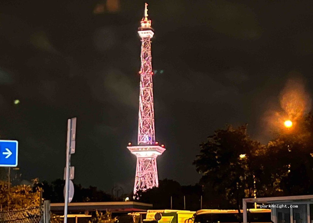 Nur zum übernachten völlig ok, einfacher Parkplatz Blick auf den Funkturm Autobahn liegt direkt neben an