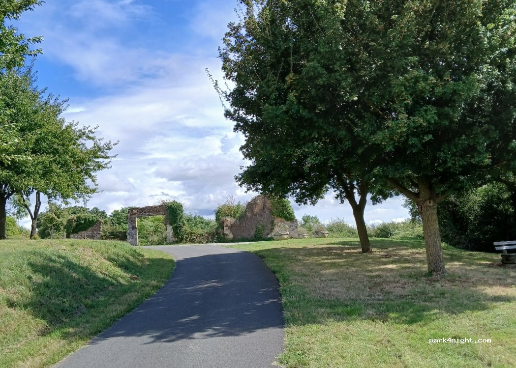 Small gravel parking lot at the foot of a medieval keep. Ideal for a short break or even a night. No restrictions. Very quiet. 300 m from the village.