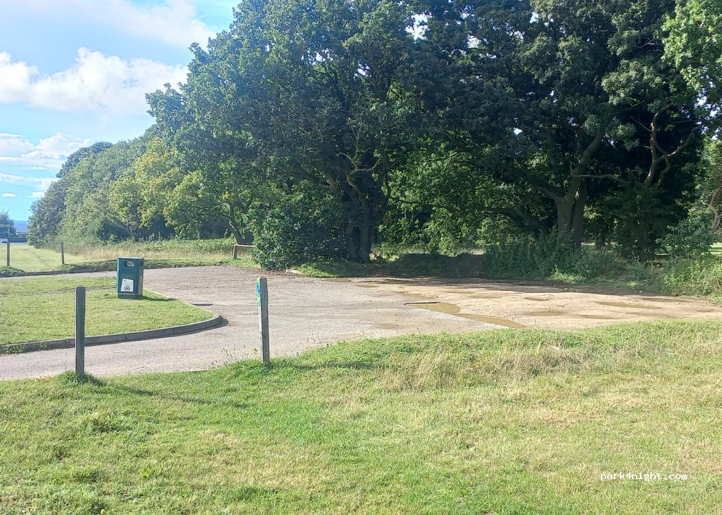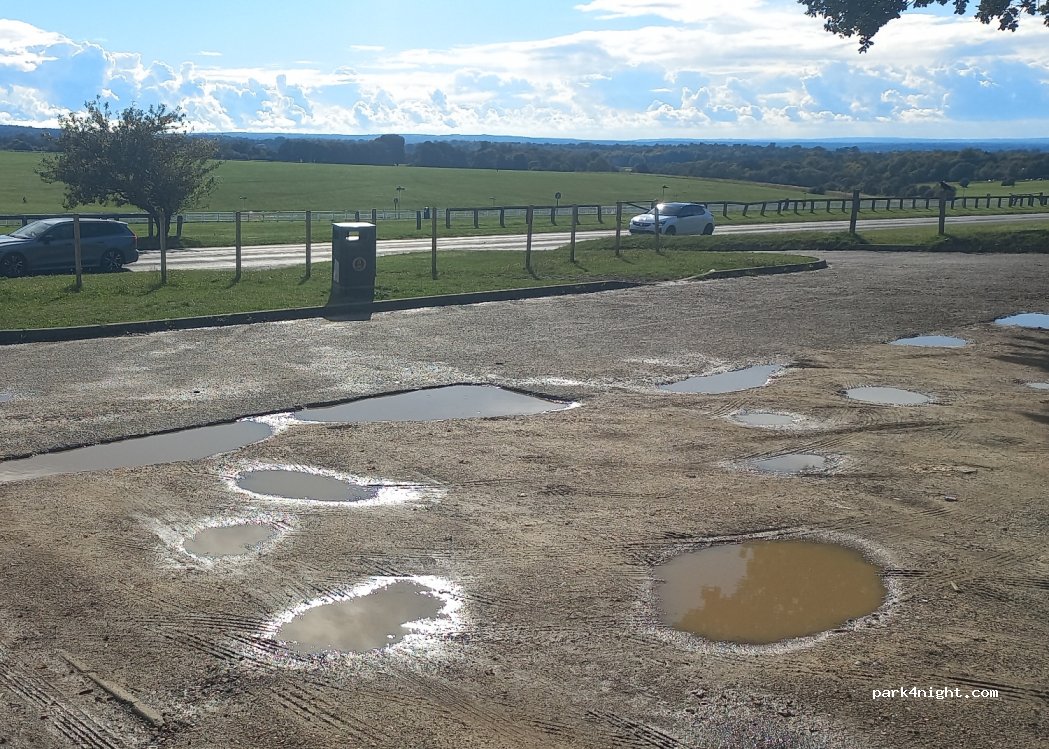 Just parking. Overlooking horse racing course. Busy road. Flat.
