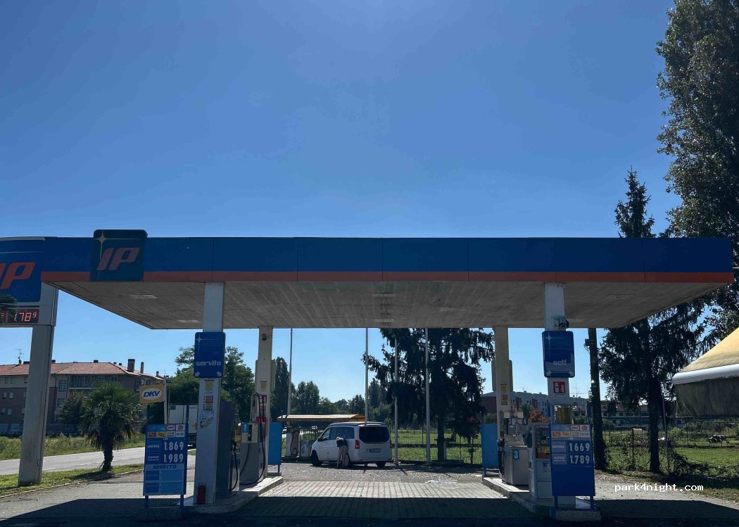 There is a gas station here where you can also fill up your water. There is already a hose here and there is a lot of water and it comes out well.