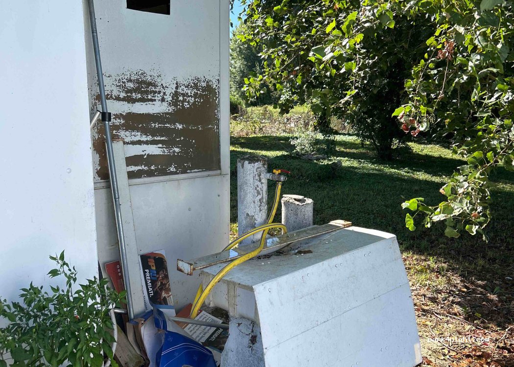 C'è una stazione di servizio qui dove puoi anche fare il pieno d'acqua. C'è già un tubo qui e c'è molta acqua ed esce bene.