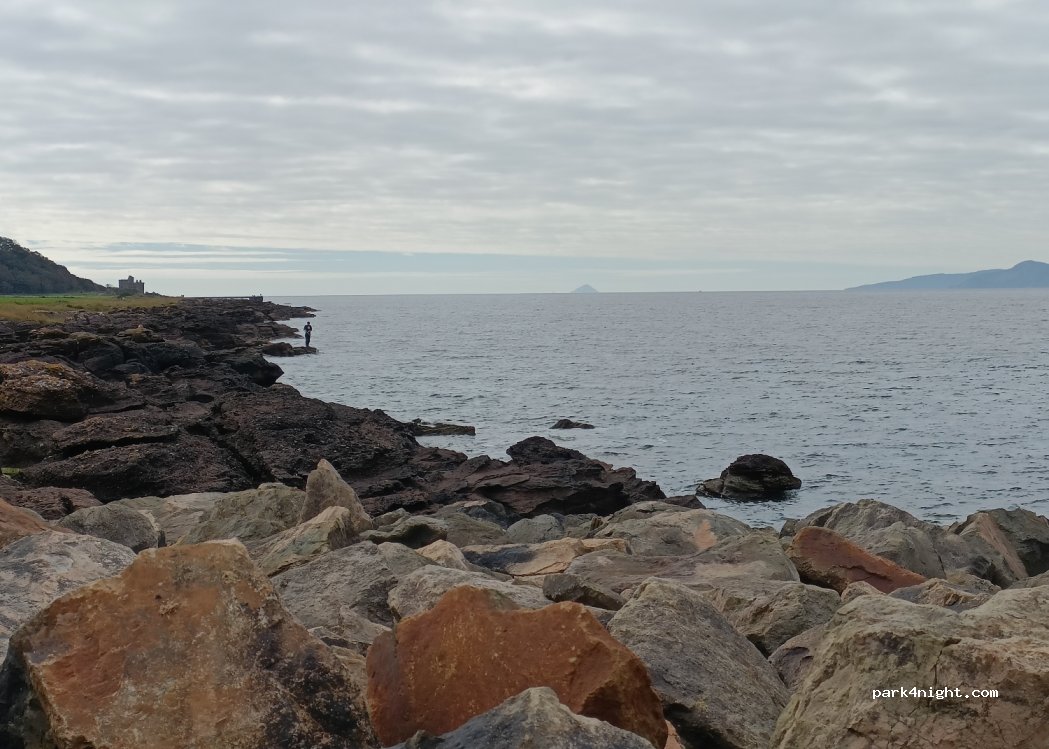 Drive right to the end of the road to get to parking. Good spot, looking out at Arran. Portencross Castle visible along the coast and worth a walk. Walkers and fishermen use car park but pretty quiet. No services.