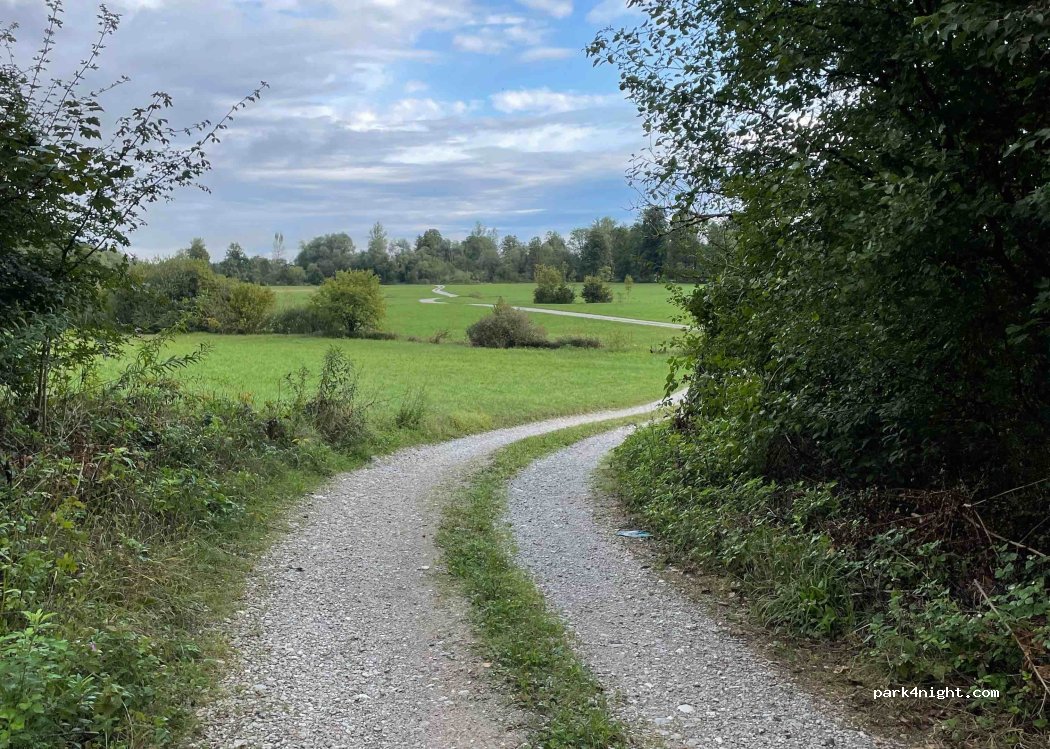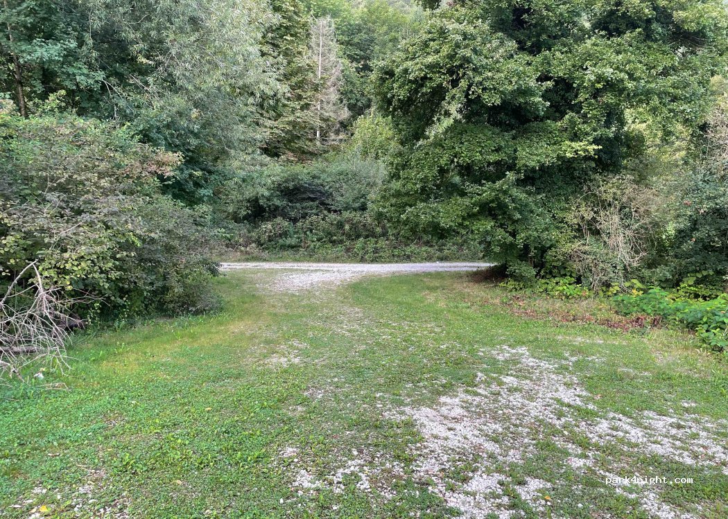 Parkplatz, neben einem Fischteich am Waldrand. Ruhiger Ort
