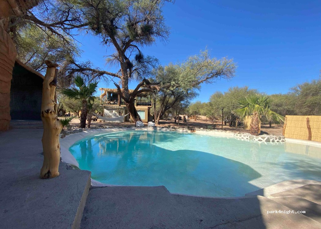La Merced Termal ist ein Komplex mit Hütten mit privatem Pool, Hotelzimmern, einem Campingplatz mit Thermalbecken, Parkplätzen mit Strom und Wasser für Zelte und Wohnmobile, einem Restaurant und einem Massageraum.
