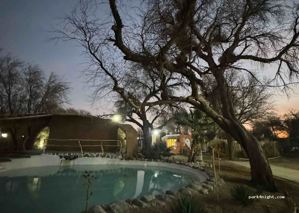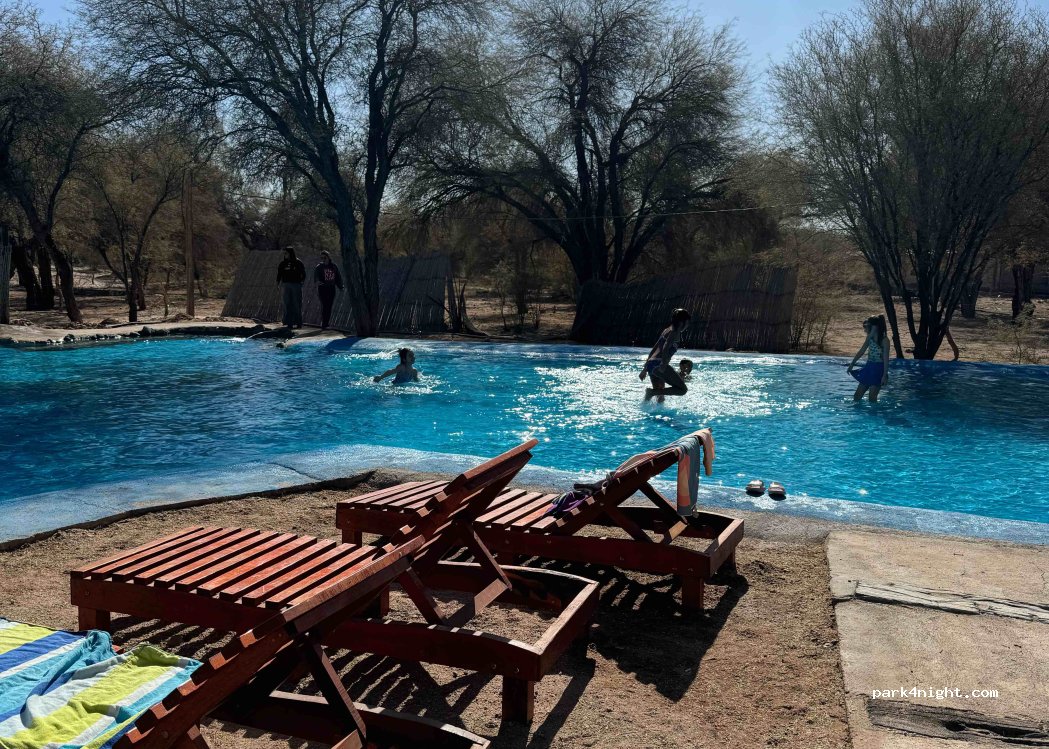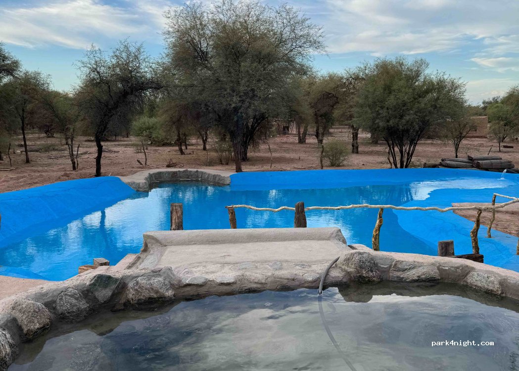 La Merced Termal is a complex with cabins with private pools, hotel rooms, a camping area with thermal pools, a parking lot with electricity and water for tents and motorhomes, a restaurant, and a massage room.