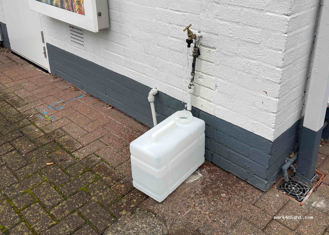 Tap is located on exit so it's much easier for campervan with water tank outlet on left side of vehicle, although it's still possible if u have a long hose for other side of vehicle. Sufficient Space at exit allows camper to be parked by filling up.