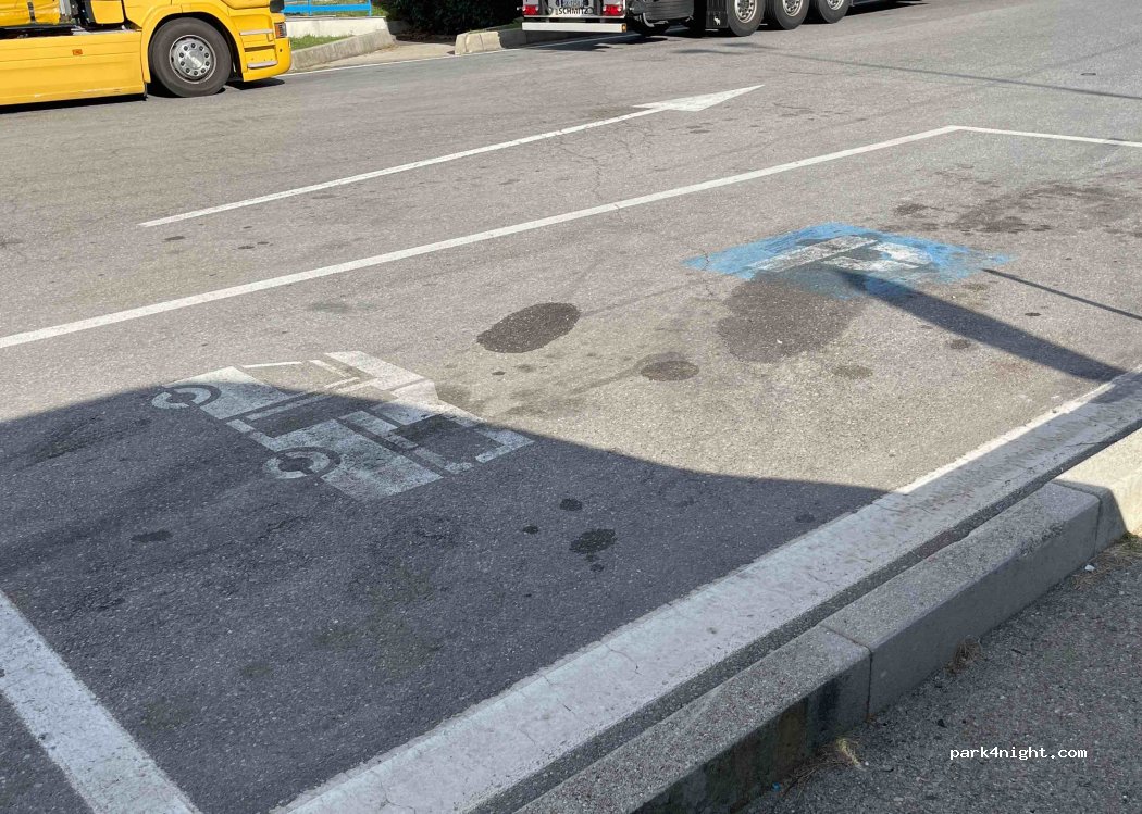 This is probably a good place for services and a for a quick stop along the road, but we didn't find it suitable for staying longer because, in October, it was noisy during the day because there wasn't even a small wall separating it from the highway.