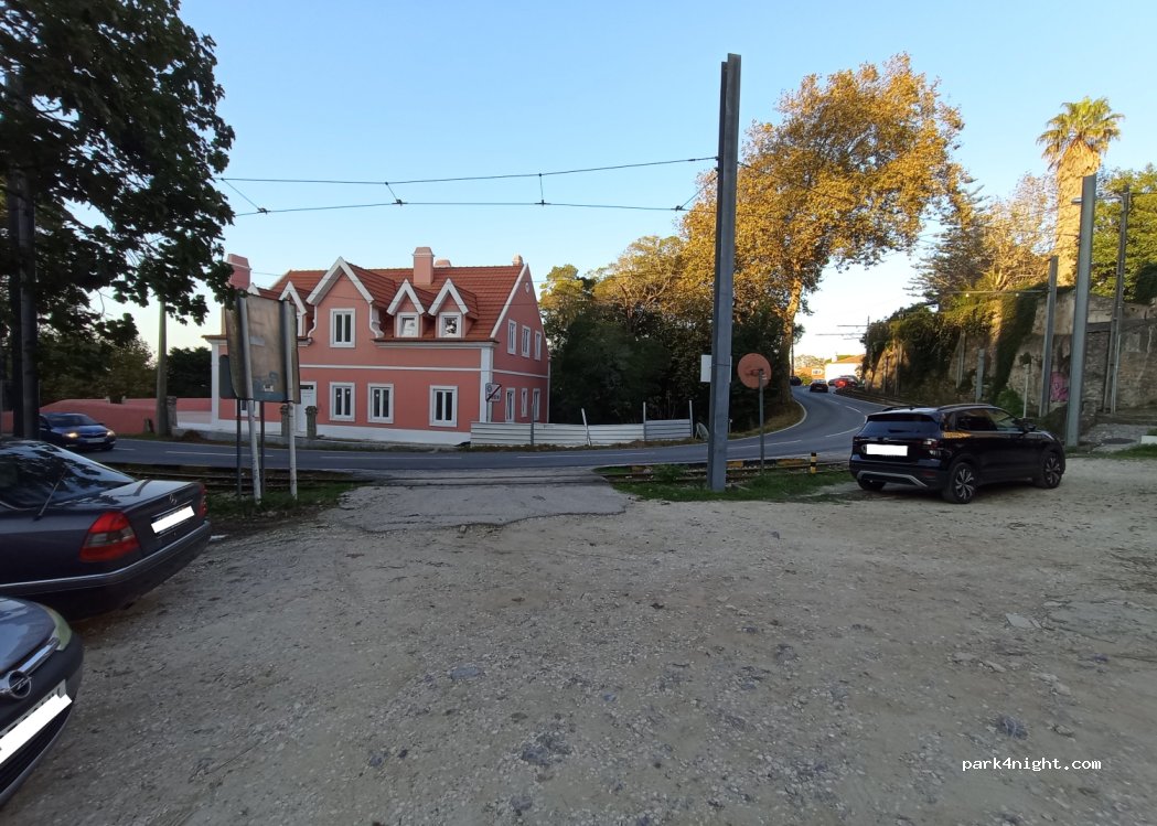 Parking gratuit en gravier le long de la route pour 4 véhicules type van, légèrement en pente. Places disponibles en journée et la nuit. Nous y avons passé 2 jours et une nuit. Le bruit de la route très passante, diminue après 20h. Accès à pied à la gare de Sintra en 10 minutes, comptez 30 minutes de marche pour le vieux centre historique de Sintra, attention ça monte.