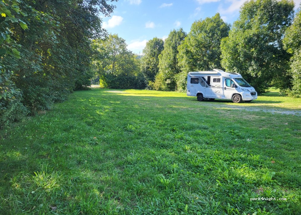 Correct position of the parking space for 6 mobile homes near the Steißlingen outdoor pool. Time limited to 12 hours. The space is graveled, but also covered in grass, protected from view by bushes and quiet