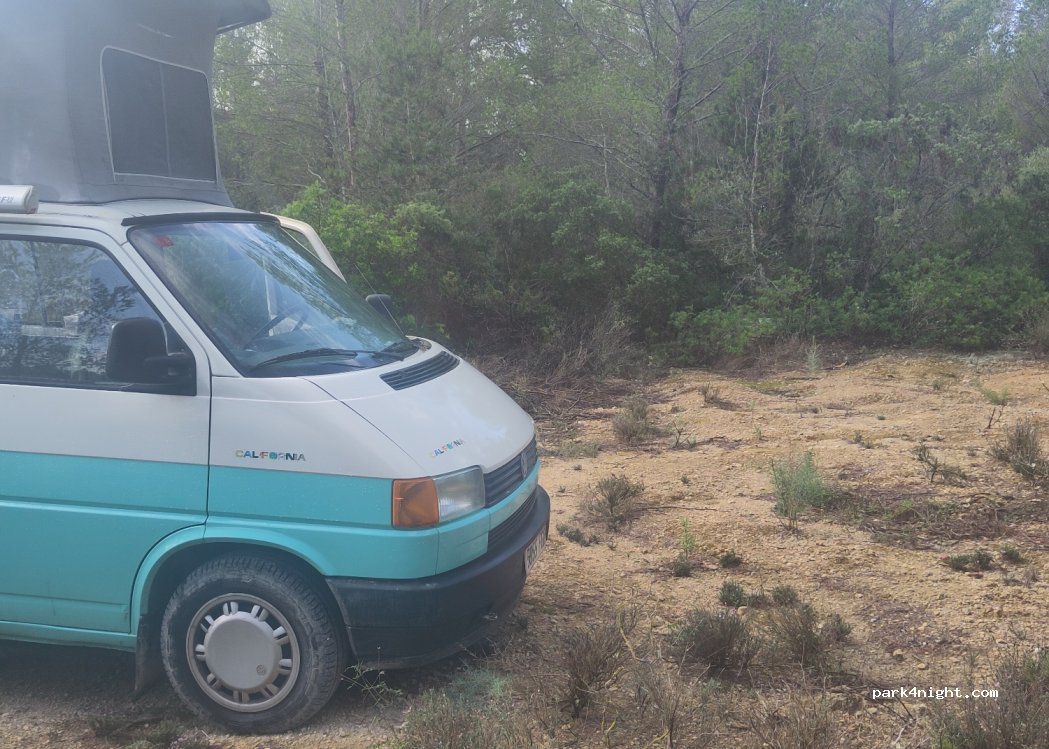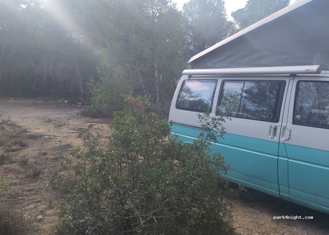 solo hay espacio para un coche/furgo, esta un poco inclinado, pero hay sombra, los vecinos han pasado un par de veces nadie ha dicho nada, lugar tranquilo
