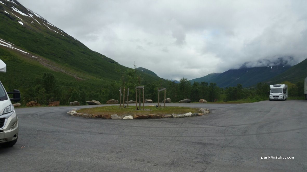 Right next to the main road to Tromsø, but ok for one night or rest. The black water room is locked, but the toilets can be open with any card with magnetic stripe for free.