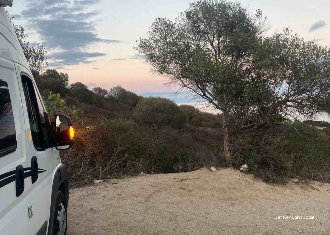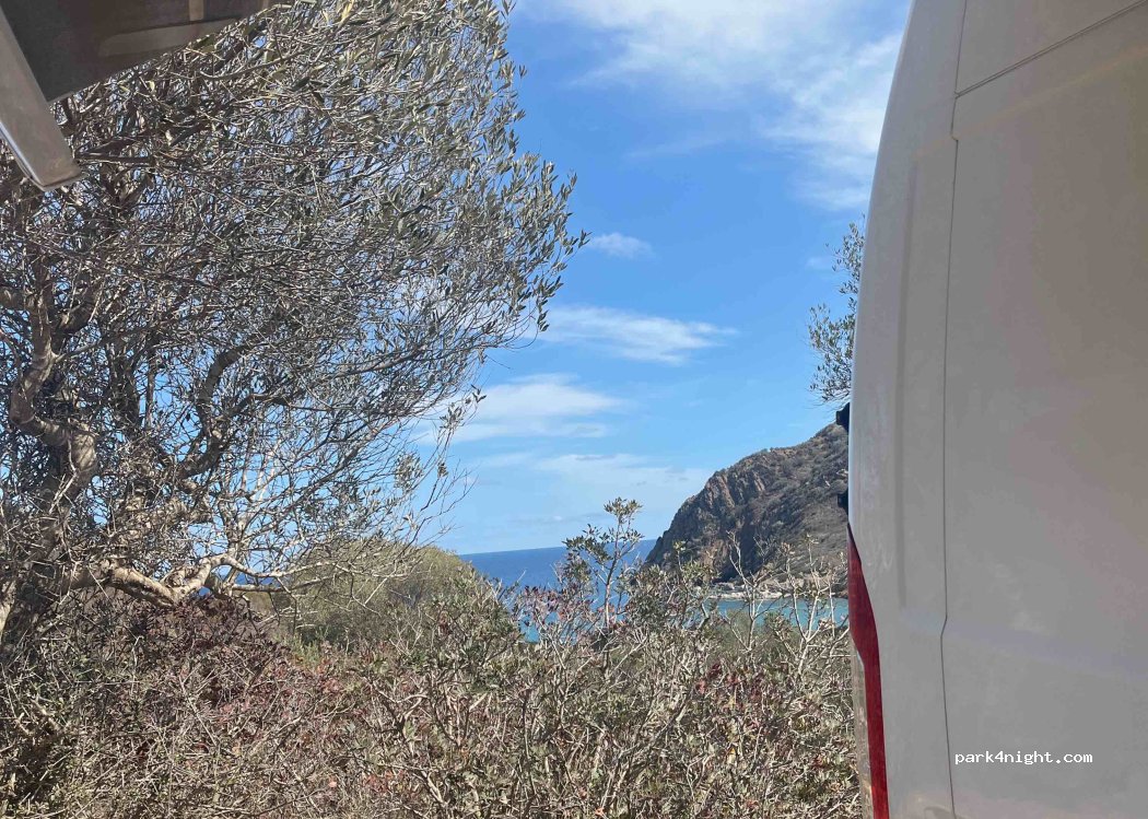 4 stelle perché non un punto in bolla, per il resto favoloso. percorso fattibile (no 4x4), ma dissestato, non adatto a camper con sbalzo posteriore. notte silenziosissima in compagnia dell'ormai famoso cagnone. in alto sopra al mare a due minuti a piedi dalla caletta. pulito.