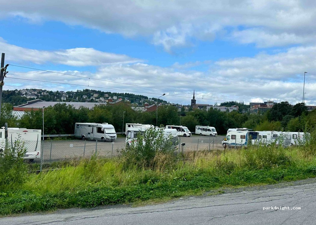 Praticamente in centro a Narvik di fianco alla ferrovia, monorotaia passa un treno saltuariamente : non disturba bello spiazzo, tranquillo grande fornito sempre con acqua ed elettricità all’ingresso, schiacciare il bottoncino per ritirare il biglietto, . Posto consigliabile per una notte due per girare in nervi che piacevole.