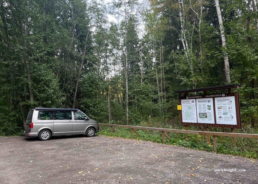 Estacionamiento perfecto para comenzar el sendero circular Kalkinpolttaja de 4,8 km en el Parque Nacional Sipoonkorpi