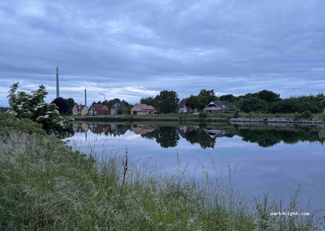 Parking without camper services on the edge of the Odense fjord canal. Starting point for walking or cycling. Near the Odense Kayaking Club