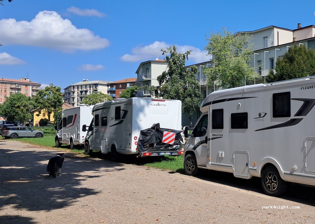 Venus 2 jours de suite le long du chemin de halage, à 10 mn à pied du musée Civici del Castello et de la basilique San Pietro in ciel d'Oro. Tout au bout des pêcheurs viennent l'après-midi tirer des lignes. Endroit sûr.
