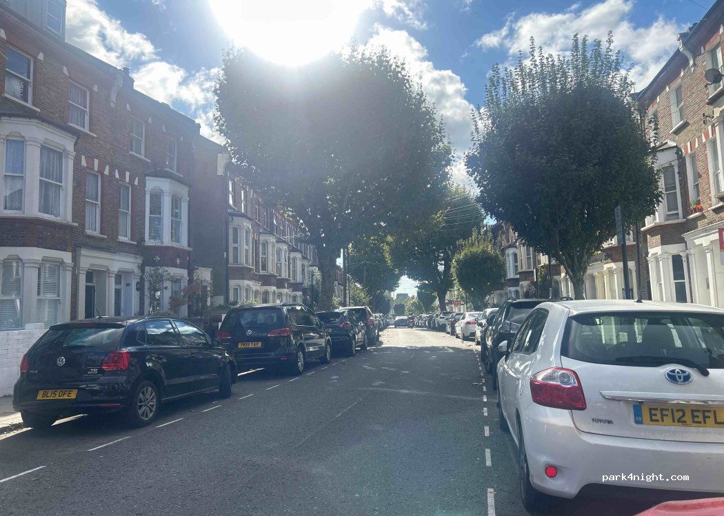 On street parking in residential area on a quiet street. We got here earlier on a Friday. Left side of the street is resident permit holders only but on the right you can pay for parking with app, in case it's not free yet. Parked here with a small camper