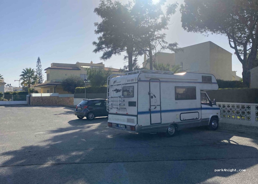 Zona residencial, muy tranquila, al lado de la playa (tras buscar por los alrededores, entre obras y sitios que no dejaban pasar AC, acabamos allí, no está fácil la zona). No tuvimos problema en pasar la noche, a priori se puede, pero éramos los únicos en el parking. Sin sacar sillas y mesas y no montar mucho ruido no hay problema!