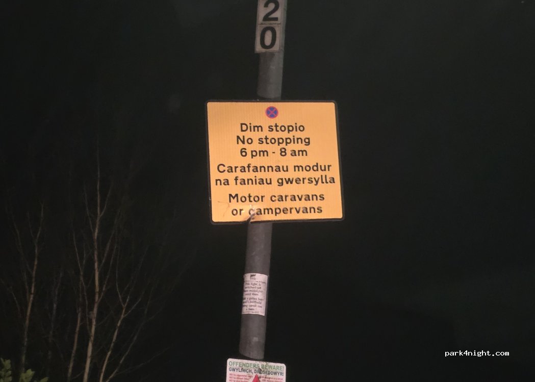 Restriction on 'motorhomes and campervans." after 7pm. Perfect for a stealth microcamper. Good signal and bin.
