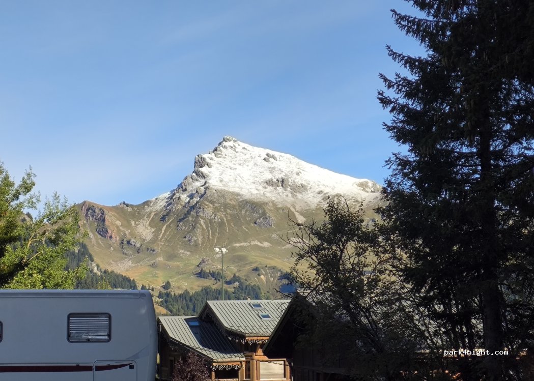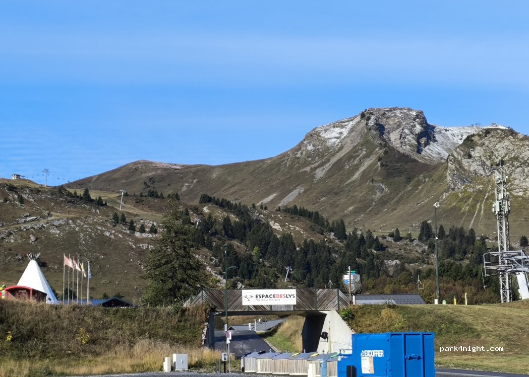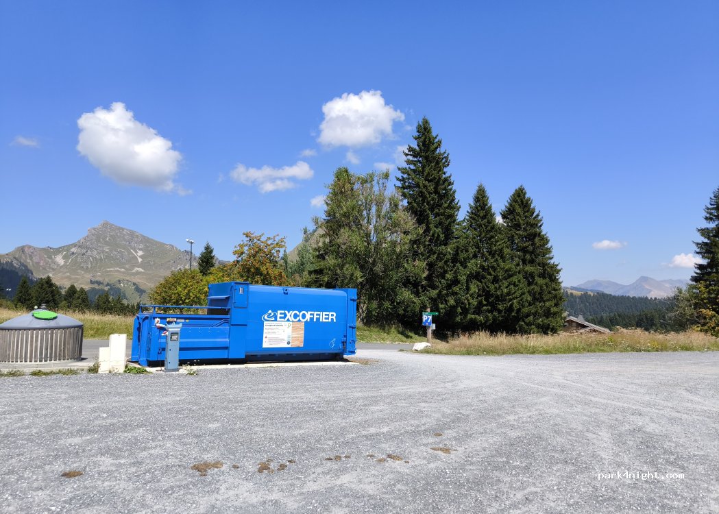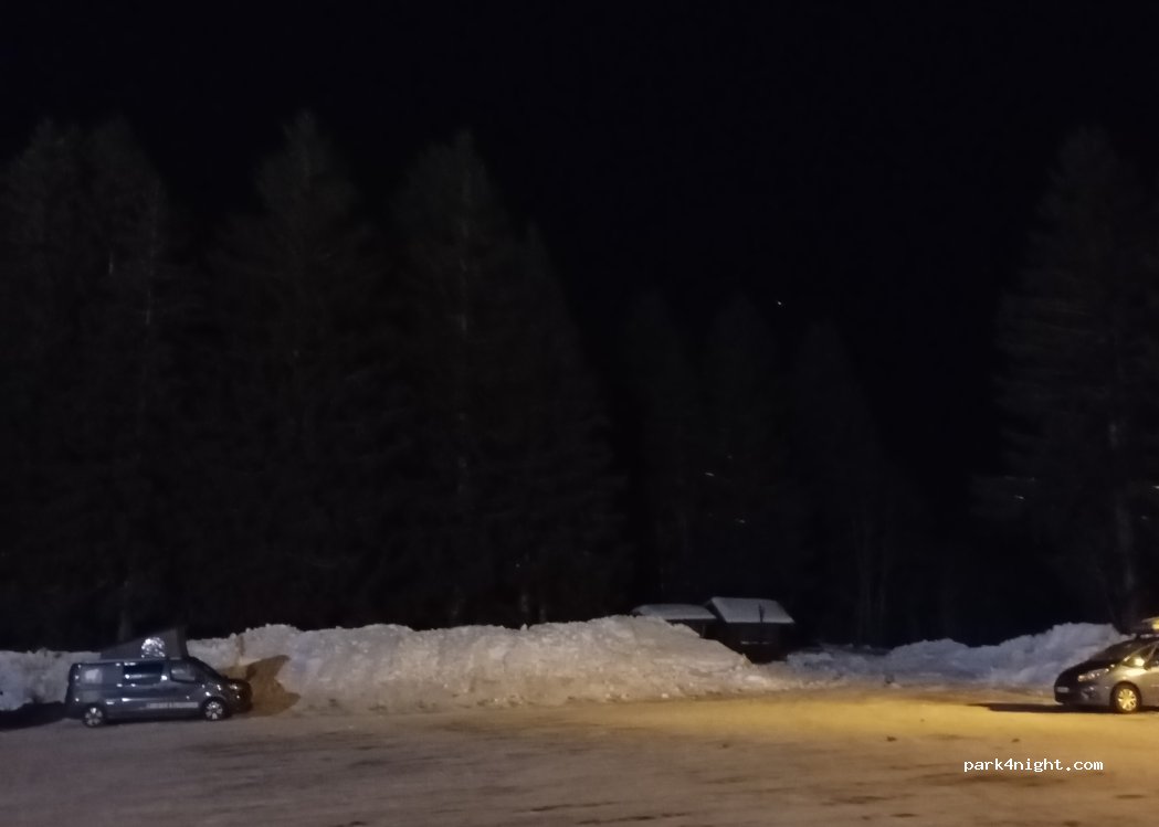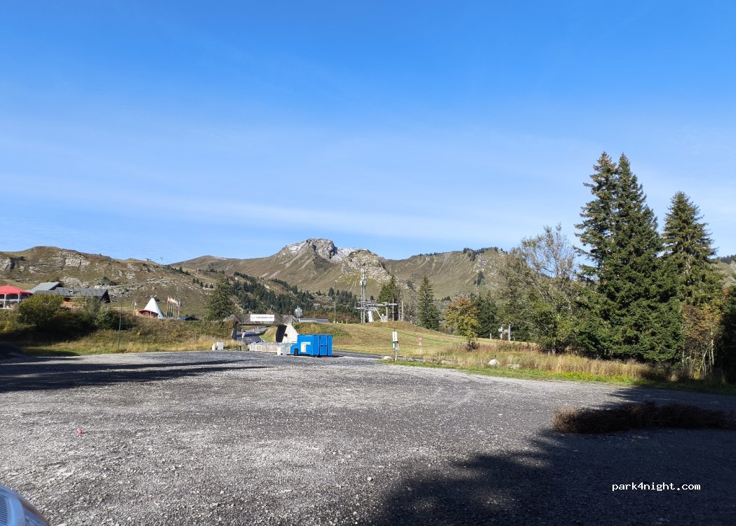 Parking en gravier avec une belle vue sur les montagnes. Calme la nuit dommage que des jeunes viennent faire du rodéo en voiture sur les graviers. Randonnée à faire, poubelles de tri à proximité et surtout nous avons du reso.