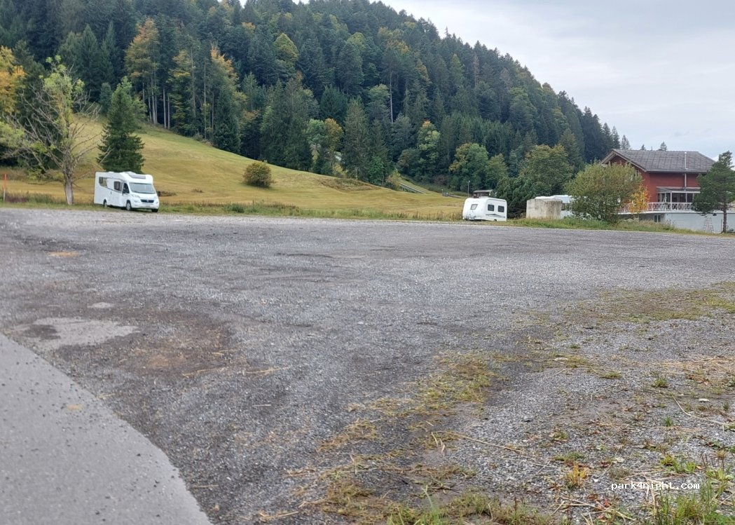 Stationnement de jour sans service. Pas de stationnement la nuit, mais beaucoup d'espace, très en pente. Tremplins de saut à ski à proximité, peut être serré lors des épreuves.