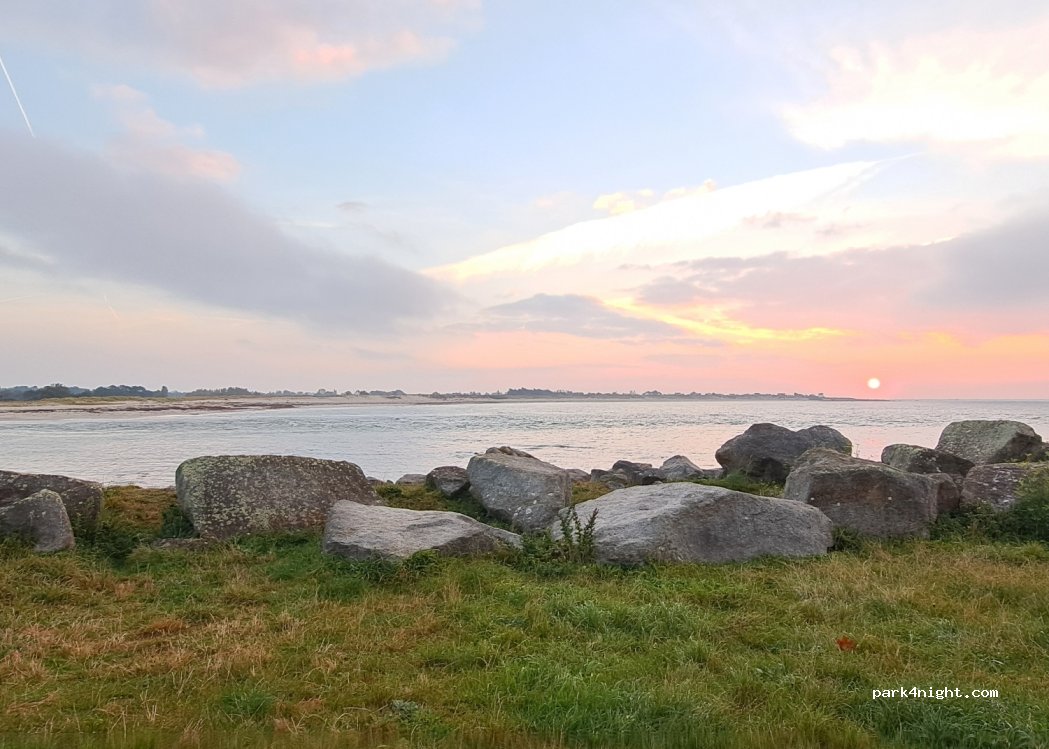 Parkplatz hinter dem Wassersportclub, direkt am Meer, Felsen und Strand in der Nähe, ruhig, Schranke bei 1,90 geöffnet, kein Service,