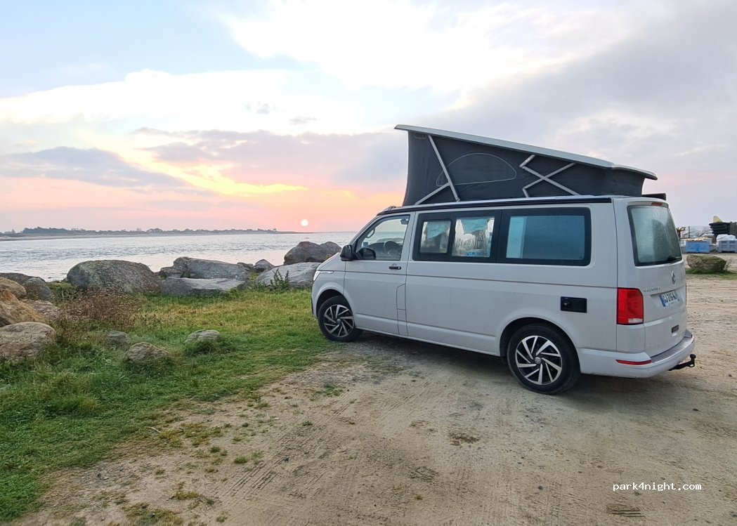 Parking located behind the nautical club, facing the sea, rock and beach nearby, quiet, barrier at 1.90 open, no service,