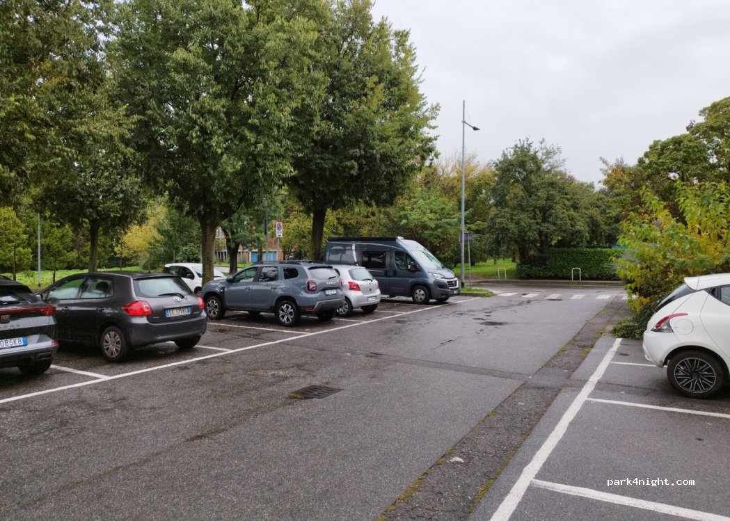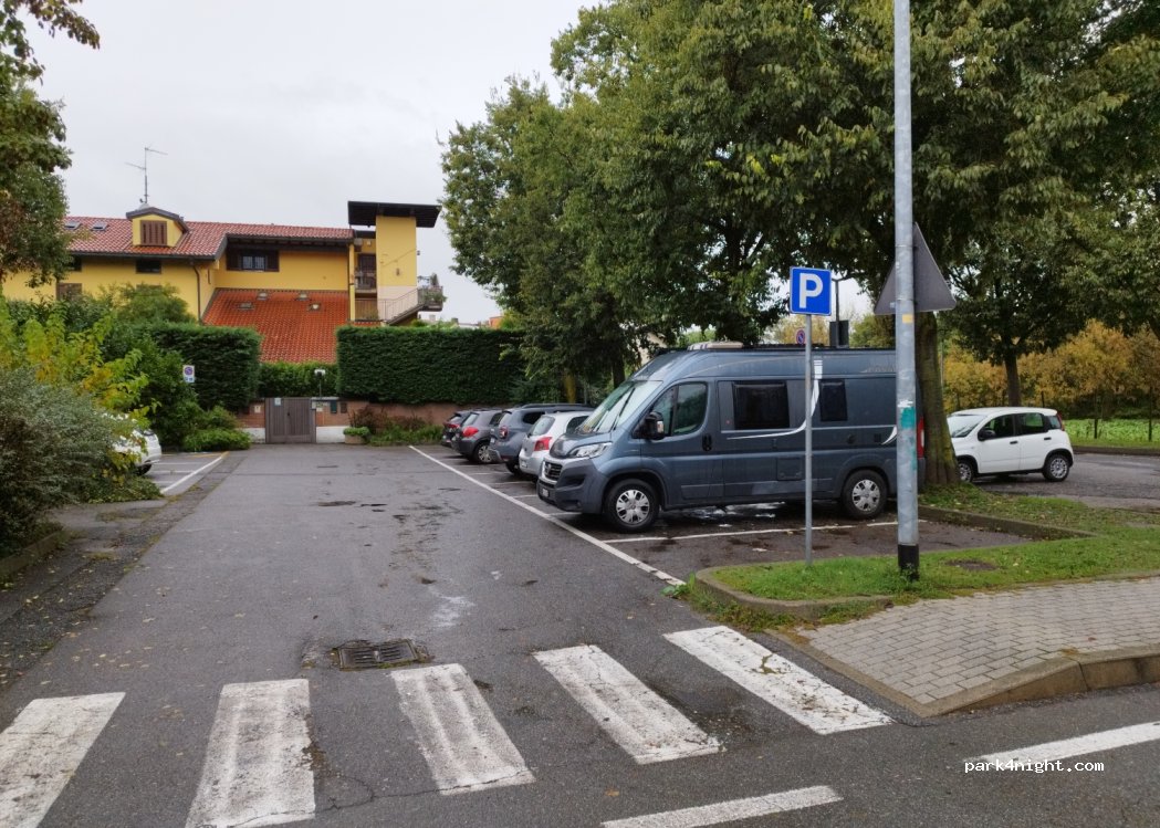 Gute Übernachtungsmöglichkeit in gepflegtem Aussenquartier am Südrand von Milano. Park vis-à-vis, Restaurant 50 m. Tagsüber Landeanflug hörbar, nachts total ruhig. Beleuchteter Platz mit einigen gekennzeichneten Parkfeldern. Jeweils Mi für 2 Stunden eingeschränkt. Nichts für grosse Wohnmobile!