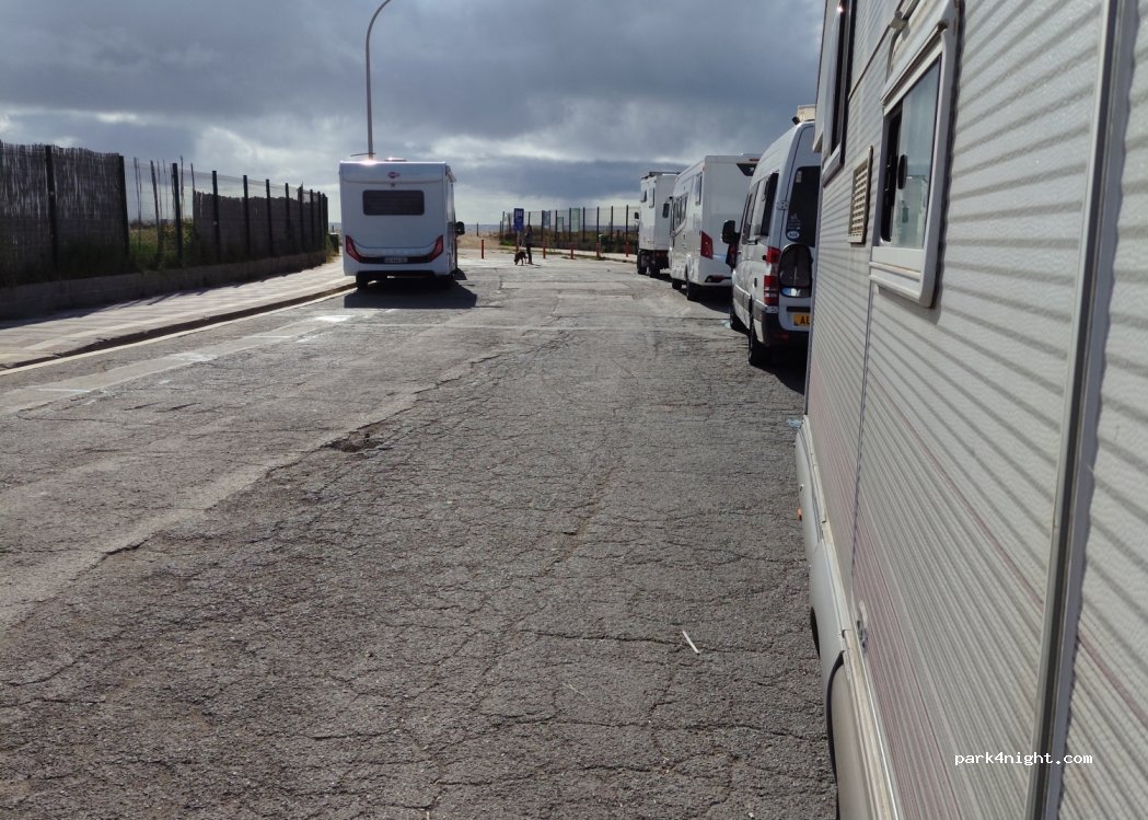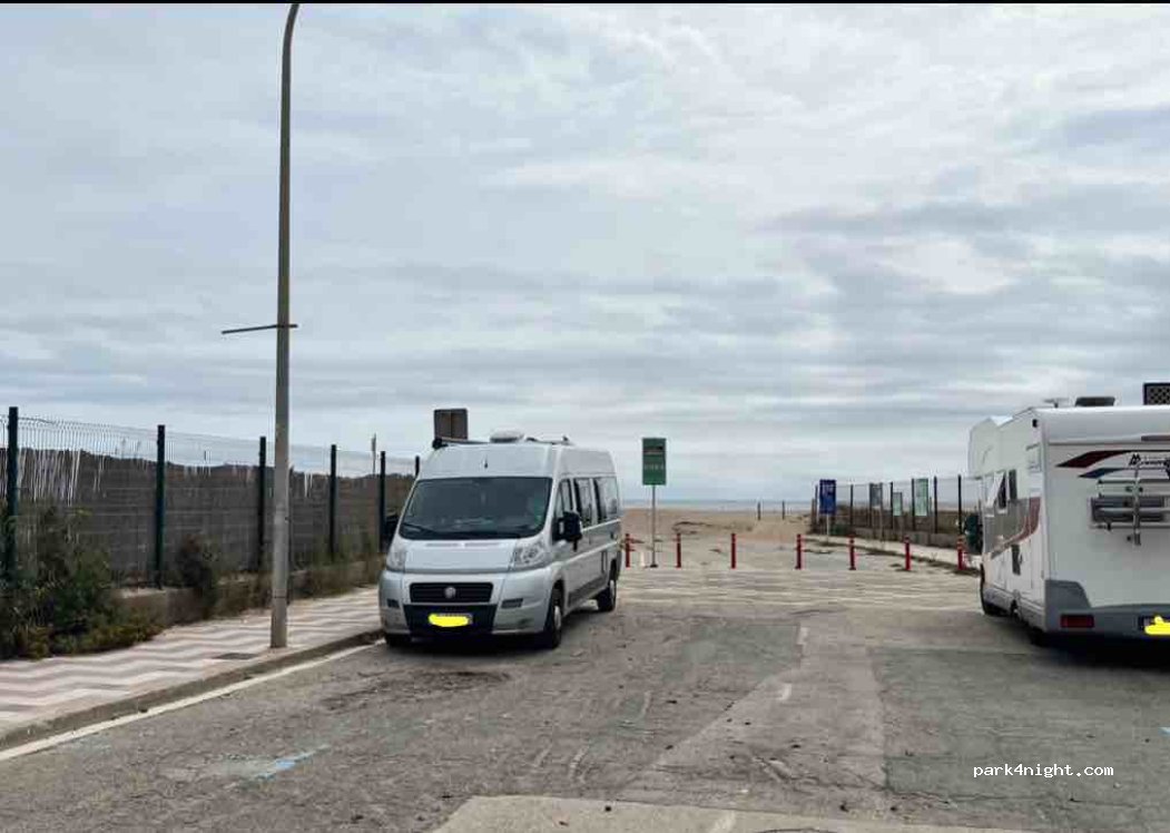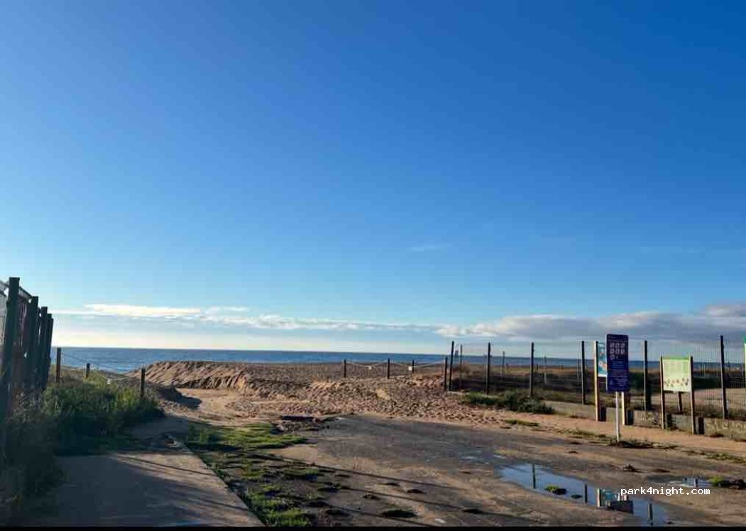 Un lugar perfecto, seguramente por las fechas, no hay nada y siendo esas fechas no había que pagar, éramos 3 autocaravana, un buen descansa al ruido de las olas que estaba la marea bastante alterada, pero súper descanso, sobre las 7h empezaba la gente a venir a pasear sus perros, pero súper tranquilo y sin ruidos que molesten. Nos encantó aún no teniendo ninguna instalación, suelo plano.