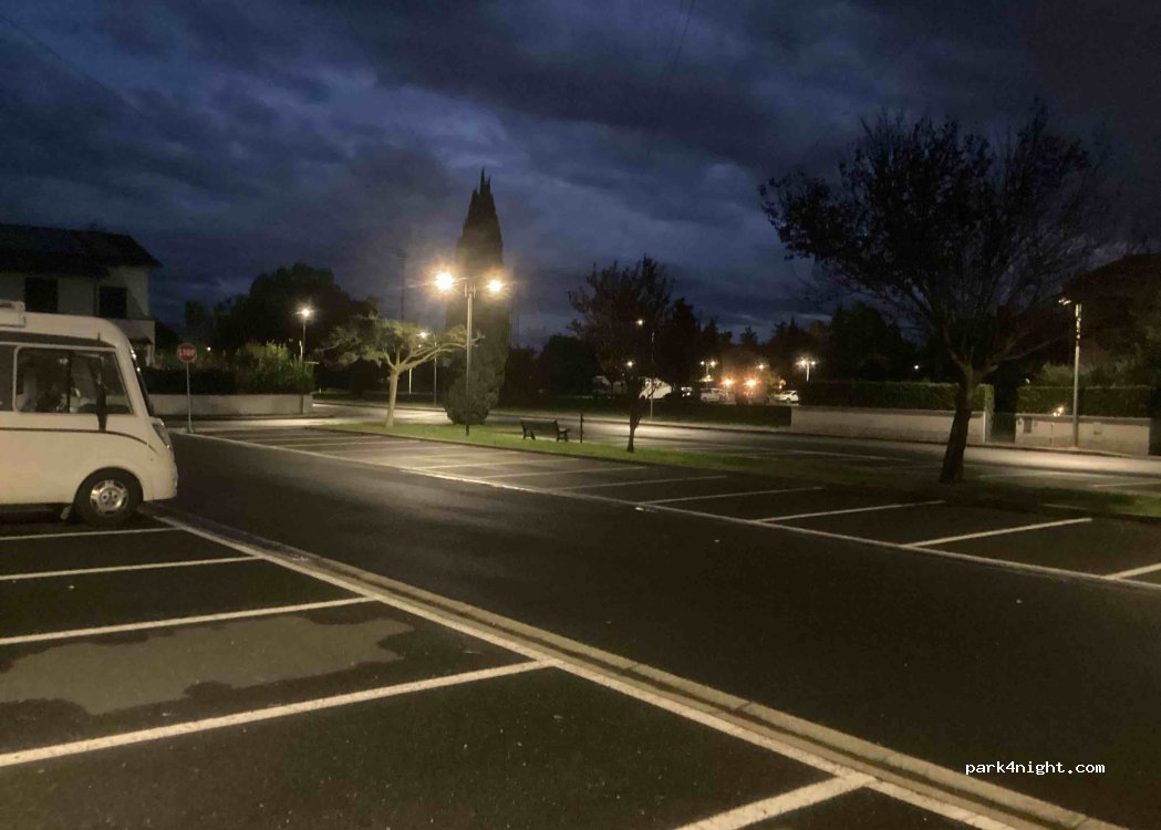 Ruime èn rustige parkeerplaats middenin het moderne dorp. Restaurants op 10 min lopen en ijssalon op 50 meter.