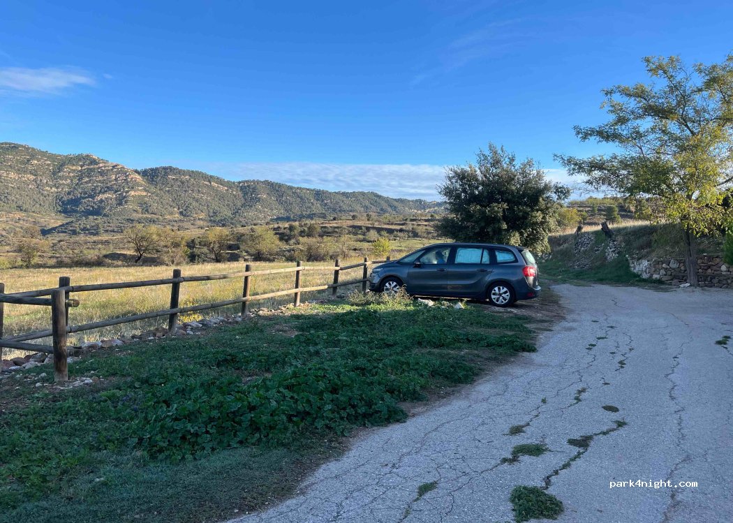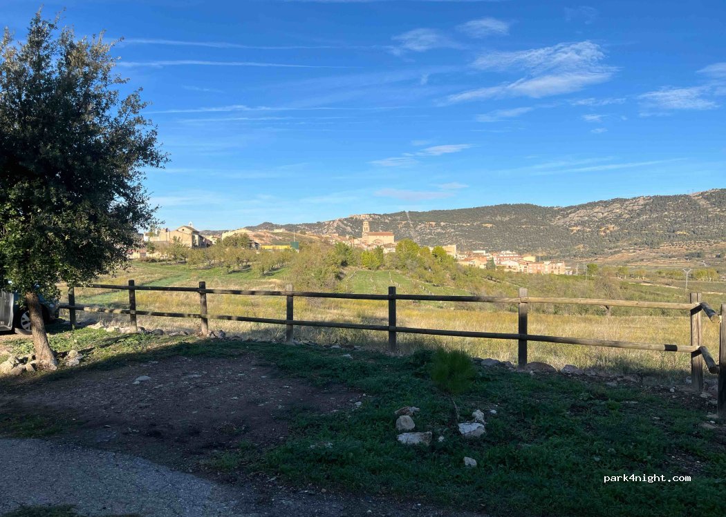 Sitio tranquilo, al lado de una antigua fuente y con vistas al pueblo, perfecto para pasar la noche. Cuidado si tu vehículo es muy grande, no hay mucho espacio y es posible que no puedas aparcar.