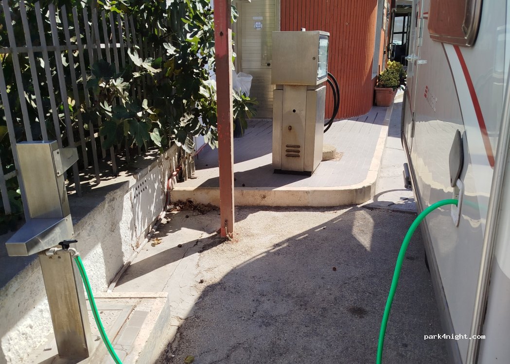 Water connection at the Agip petrol station in Pachino. I don't know if it's drinkable water. Probably not. Little water pressure, but with a little patience the water tank fills up here too :) Better than searching forever.
