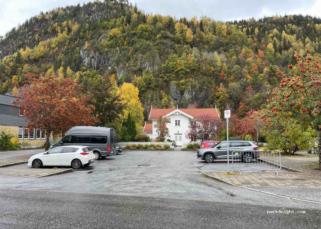 Aparcamiento al lado de una panadería, supermercado Joker también cerca. Un poco más adelante hacia el lago hay un supermercado "extra". “No acampar” solo para estacionamiento diurno.
