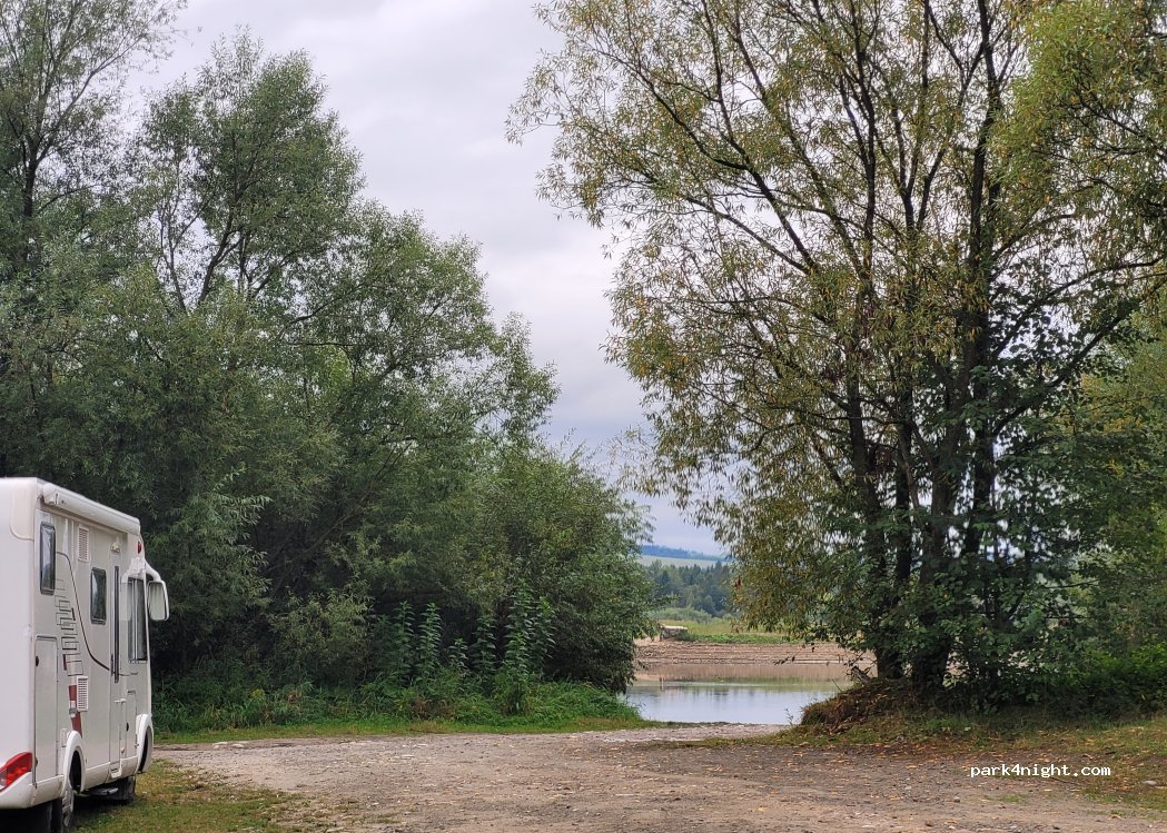 Bonito lugar junto al lago. Pequeño estacionamiento salvaje. Fuera de temporada y por la noche está vacío. Bonito lugar para andar en bicicleta.