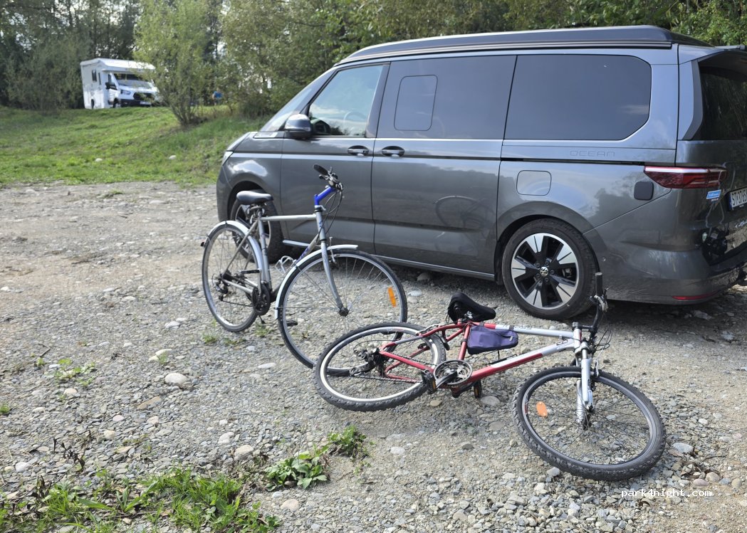Nice spot just at Lake. Small wild parking. Off season and on the night is empty. Nice place for bike