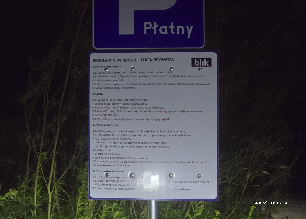 there is a newly added sign that major part of the parking is private and the fee is expected (by BLIK 30 pln overnight 15 pln daytime)