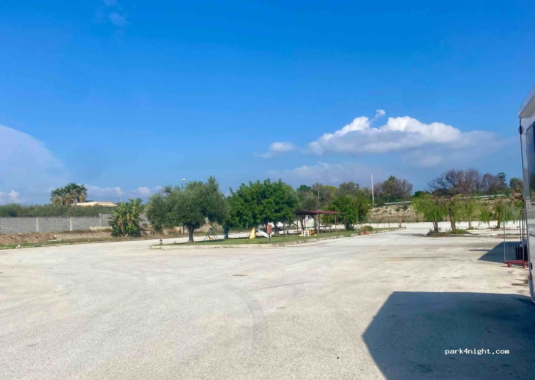 Un homme très sympa nous a demandé 3€ pour vidanger eaux grises et noires remplir l'eau. Toilettes très propres. Il y a aussi des douches, de quoi se brancher, des tables extérieures et jeux pour enfants. De la petite restauration et un babyfoot. On peut y dormir. C'est une aire d'autoroute, mais c'est l'endroit gratuit (ou presque) le plus propre et fonctionnel que nous ayons vu en Sicile !