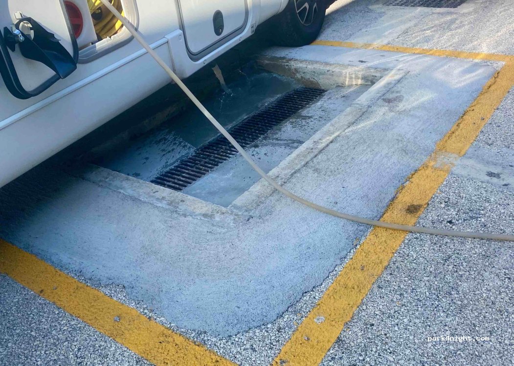 Probably one of the best alternatives for emptying and refilling in the area. The garage owner is super friendly and everything works. Grey and black water share the same drain, so clean it after use. Not sure if the water is potable, so we’ll use it for the van and get drinking water elsewhere.