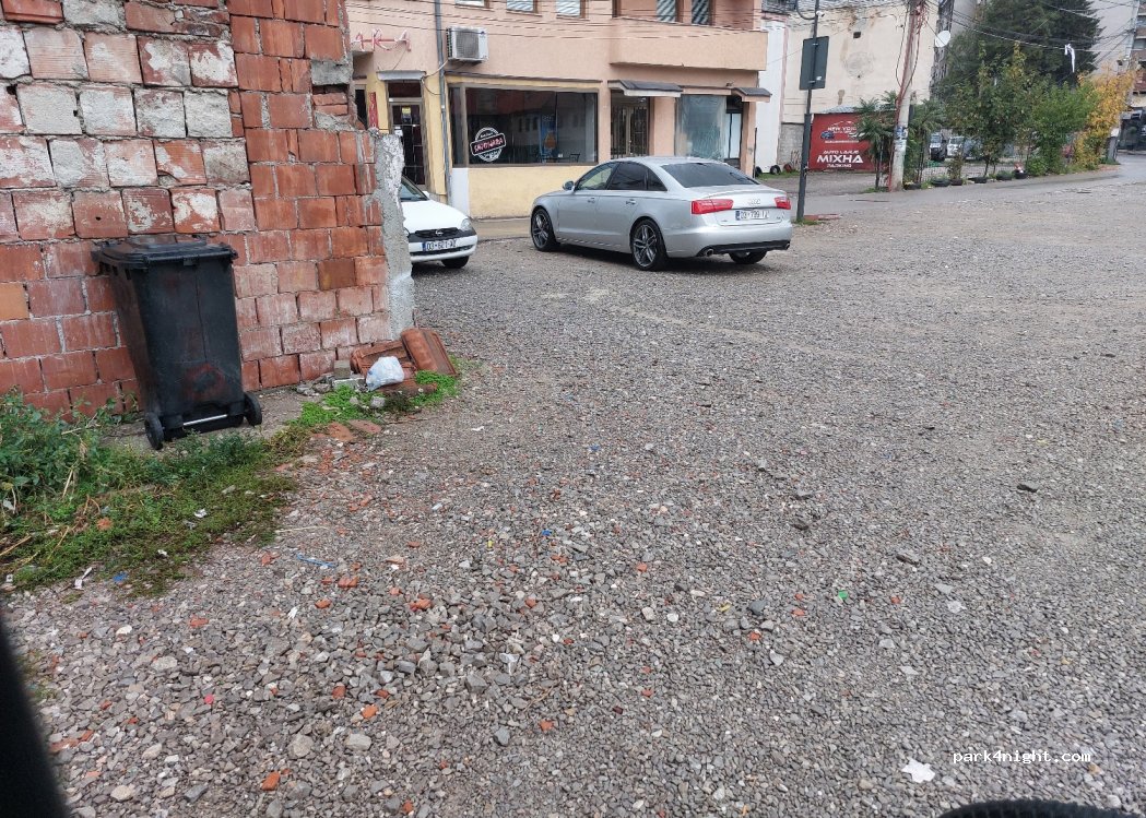 Right in the center, friendly parking attendant. There is a camera in the right corner behind a house, so we parked there. It was noisy until around midnight, then extremely quiet.