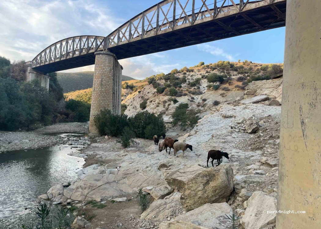 Direkt an alten Eisenbahnbrücke kann man von der P11 etwas abfahren und steht auf am Weg zur Brücke. Der Weg wird nur von Ziegen und Hirten genutzt. Die Straße kann man hören aber nachts kam niemand vorbei. Geeignet für ein oder mehr Nächte…