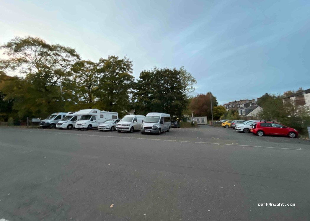 Car park with no signs saying no overnight parking or any charges. Short walk into town center with plenty of shops food pubs and scenery